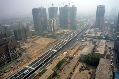 和平路是石家莊市北翼東西向的一條城市主干道,是石家莊市總體規(guī)劃中的“四橫”之一。和平路跨線橋(紅軍街——棉一立交橋)工程始于紅軍大街,跨越中華大街、九中街、北新街、車輛廠前街、京廣線、勝利大街、平安大街、長征街后與棉一立交橋連接,高架橋全長3616米。 由我公司承建的一標(biāo)段西起紅軍大街,東止于北新街東220米,總長1621.267m,由高架橋梁、道路、排水管道、道路照明等工程項目組成,是全線三個標(biāo)段中工程量最大的標(biāo)段。2009年4月30日主橋主路正式通車,比預(yù)定工期提前了10個月。 “和平路跨線橋工程的建成通車,標(biāo)志著省會城市基礎(chǔ)設(shè)施建設(shè)翻開嶄新的一頁,對完善市區(qū)路網(wǎng)結(jié)構(gòu)和改善市民出行環(huán)境、進(jìn)一步改善城市面貌意義重大!---燕趙晚報 2009年5月1日 頭版